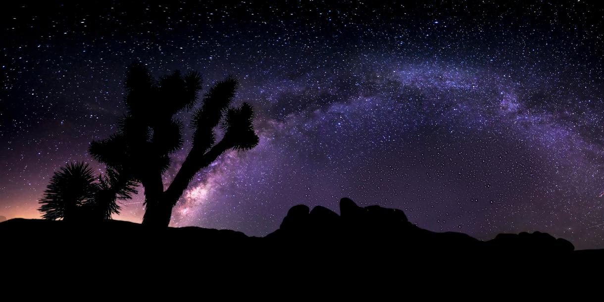 Joshua Tree National Park is a dry paradise, and it transforms into a celestial space at night when everything but the twinkling stars disappears into the darkness. The reason why this park is so dark is that it is very far away from any major city, and also because it is located in the High Desert 5,000 feet above sea level.