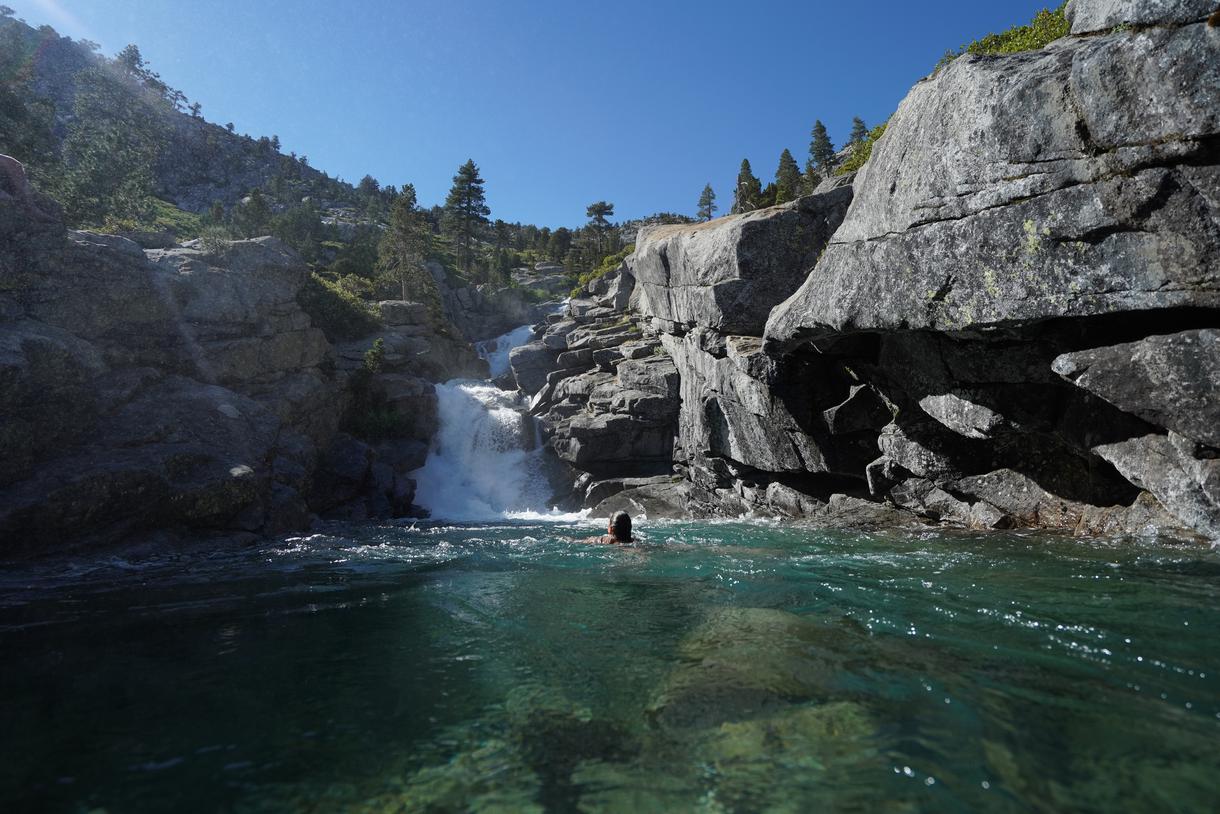Start your adventure along the tree-lined trail, and hike through the granite landscape of the Desolation Wilderness until you reach the breathtaking, 500-foot-tall Horsetail Falls. Located in the Eldorado National Forest, just outside of South Lake Tahoe, this waterfall is the perfect place to contemplate life—the sound of the water hitting the rocks makes it nearly impossible to listen to anything else. If you're feeling adventurous, take the path towards Wilderness Boundary from the junction so you can visit the base of the waterfall.