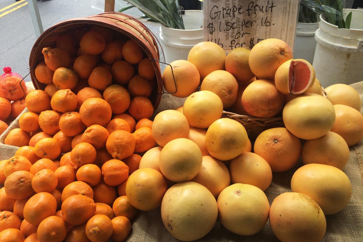 Grapefruit grows best in SoCa; it's produced mostly in Ventura County. This sweet yet tart, bitter fruit is delicious on its own or in dishes. Whip up a quick salad with grapefruits, spinach, and avocado for a healthy and filling meal using the bounty of California.